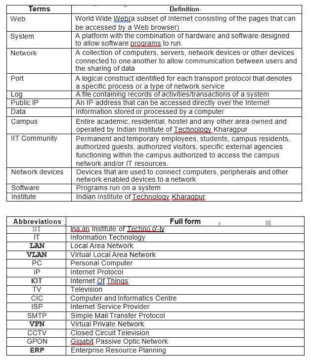 This policy applies to all members of tne Institute community including all students, temporary and permanent employees, authorized consultants and visitors, authorized guests, campus residents of IIT Kharagpur, and any other persons not mentioned above but who are permitted and authorized to access the campus network and IT resources. This policy is also applicable to all users at extension centers and Guest Houses of IIT Kharagpur in different cities.